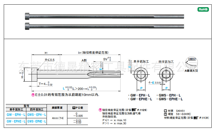SKH51 排氣頂針 單平麵加工:GW-EPH-L/GW-EPHE-L GWS-EPH-L/GWS_塑料模具配件_模具_機械設備_貨源_批發一路發