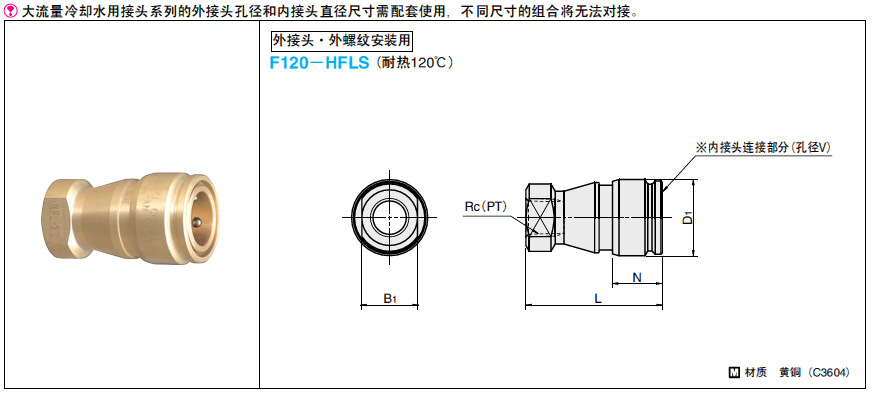 雙閥自封緊湊型大流量冷卻水用接頭(外接頭)F120-HFLS
