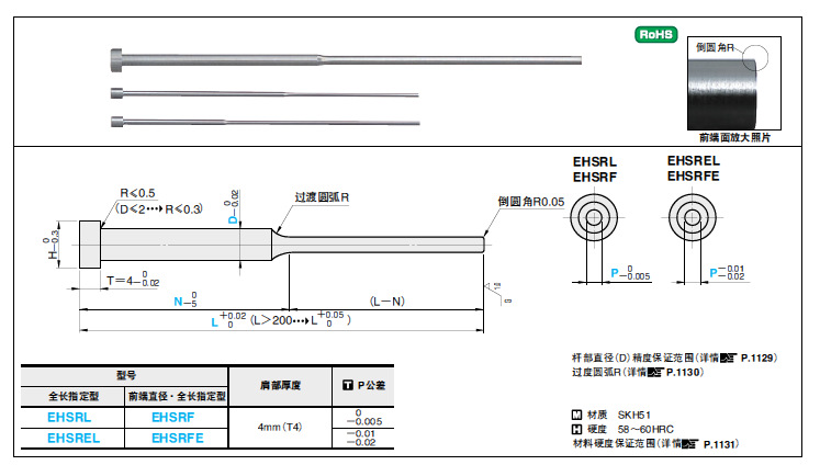 高速鋼 SKH51 (前端R加工)臺階頂針 EHSRL/EHSREL EHSRF/EHSRFE_塑料模具配件_模具_機械設備_貨源_批發一路發