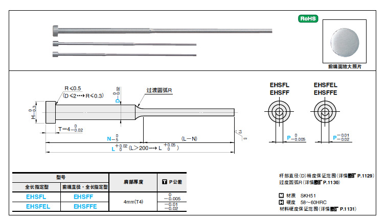 MISUMI標準高速鋼 SKH51 臺階頂針EHSFL/EHSFEL EHSFF/EHSFFE_塑料模具配件_模具_機械設備_貨源_批發一路發