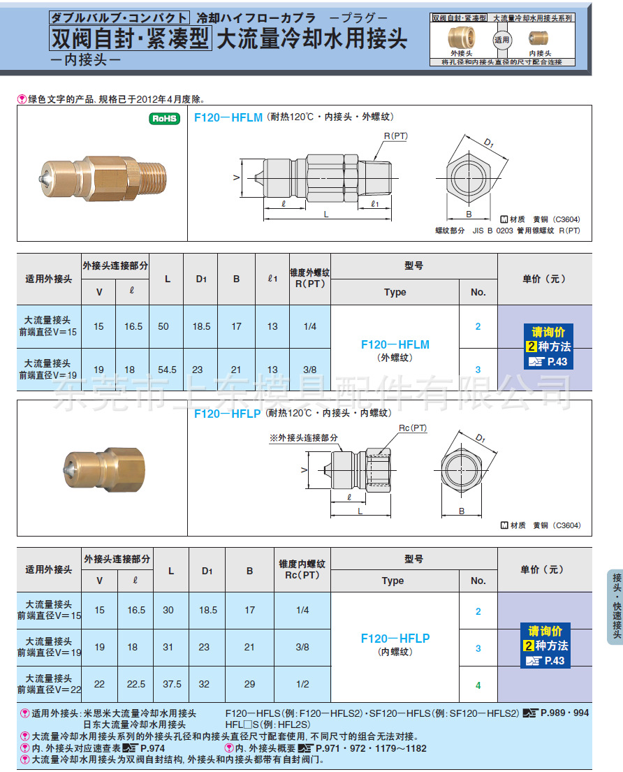 快速接頭:F120-KSH2, F120-KSH3, F120-KSHL,F120-KSM,F120-KFF,KHSH,KHSM,KHSF,F120-KHSHW,F120-KSH