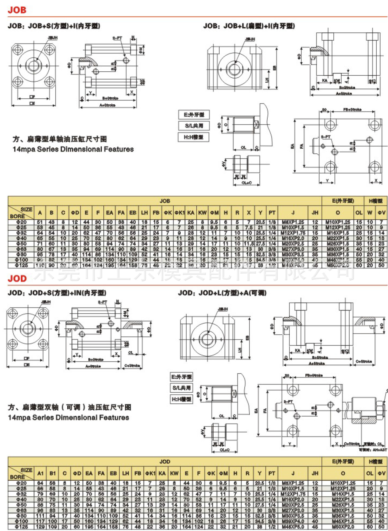 類型:輕型油缸MOB,重型油缸HOB,薄型油缸JOB,HASCO方型油缸