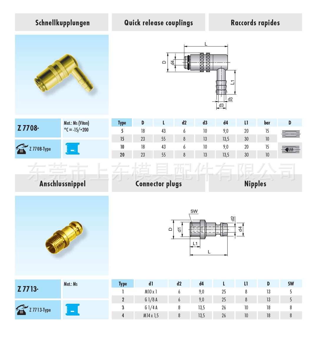 東莞市上東模具配件有限公司位於中國模具名鎮東莞長安,自2009年起專業致力於美國DME、DME-EOC、PCS、PARKER、PROGRESSIVE、法國STAUBLI、西班牙CUMSA、德國HASCO、RABOURDIN、MEUSBURGER、LUDECKE、STRACK、HARTING、SUPERIOR、OPITZ、日本MISUMI、PUNCH、LKM、NITTO、SANKYO快速接頭、水嘴、隔水片、日期章、限位夾、定位塊、頂針、導套、導柱、彈簧、行程開關等模具配件以及非標零件。我公司一直以質量求生存、以信譽求發展、以速度求效率、互惠互利的經營宗旨,在行內得到瞭眾多模具名企的肯定,我們期待與您攜手共創美好明天。