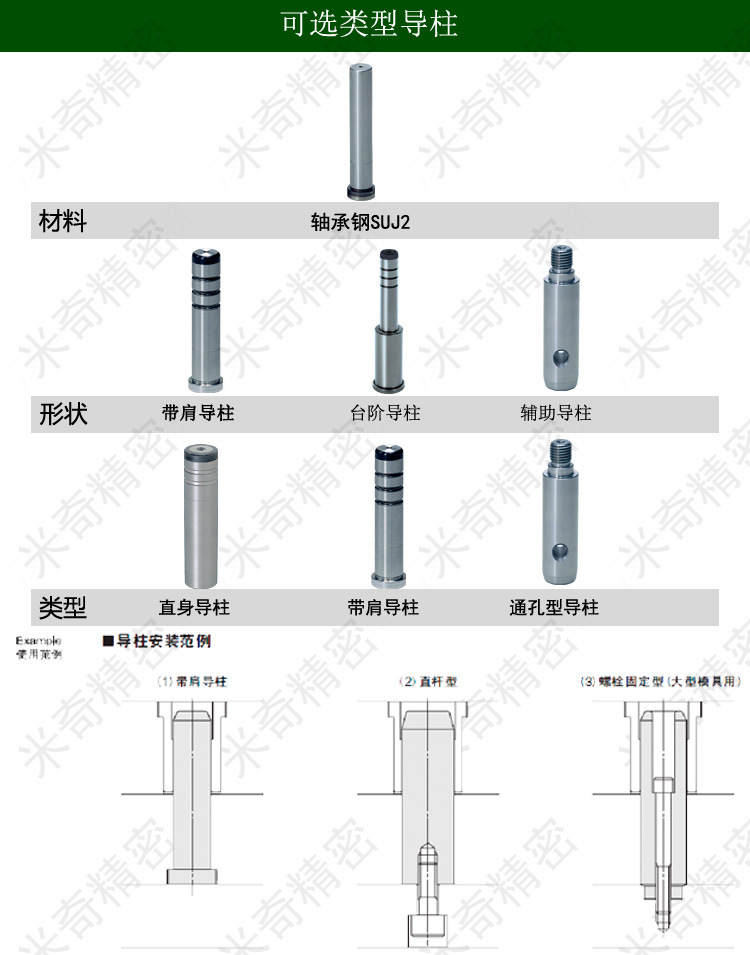 米奇精密的導柱主要分帶肩型和直桿型兩大類