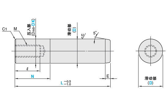 導柱同模板通常采用過盈配合固定,故導柱根部的固定部分設定為正公關。導柱同導套通常采用間隙配合相對運動,故導柱工作麵的外徑尺寸設定為負公差。為瞭使合模時導柱順利插入導套,米奇精密的導柱在頂角部還加工瞭由錐麵及R角組成的導入部。