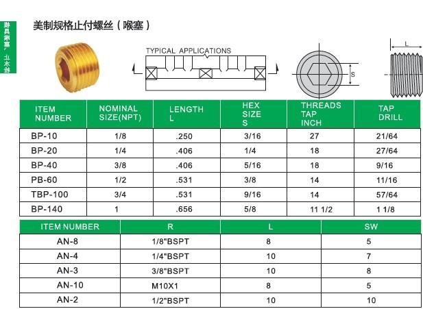 本公司生產並銷售各類喉塞(亦稱堵頭)具體規格有