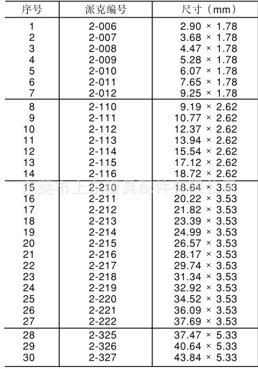 派克O型圈:2-1** 2-2** 2-3** 2-4** 2-9**