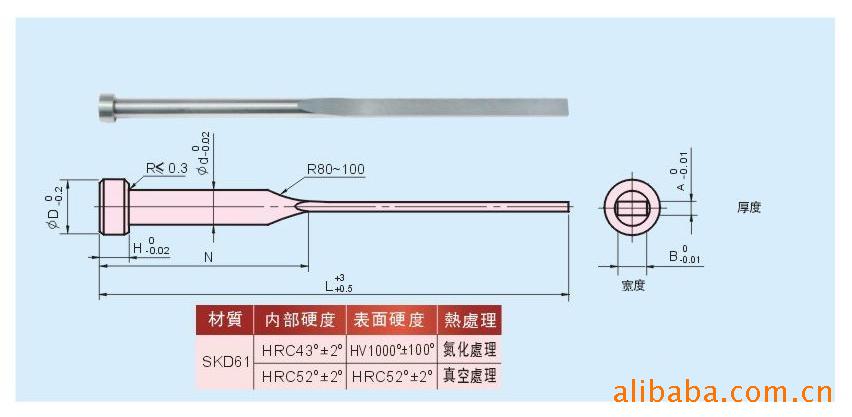 本公司專業生產製造托針,材質有65MN,SKD61,SKH51三種可供選擇,硬度高,耐磨性好,精度高,光澤度好,歡迎來電圖加工訂做!