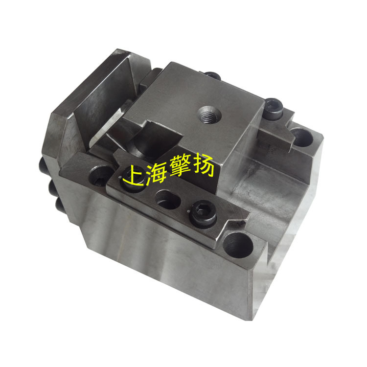 上海擎揚精密模具配件有限公司專業生產汽車模具配件,PVCC90-24.8斜楔是一種汽車模具上常用的懸吊式機構。它主要由頂端固定安裝在汽車模具下模座上,在上端座兩端動斜楔兩側分別設有回程限位塊及行程限位塊;在動斜楔一側設有回程彈簧;在動斜楔下部一端上設有與水平麵呈一夾角的沖頭;在動斜楔下部另一端設有與水平麵一夾角的導向滑塊,滑塊內鑲嵌浸油石墨;吊裝斜楔機構能使模具工序減少,縮小模具整體輪廓尺寸;能有效降低模具沖壓成本及維護成本。