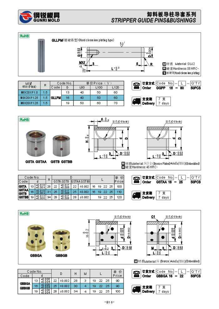 本公司專業生產:滑動導柱導套,小導柱,內導柱,鍍鉻導柱,模座導柱組件,模架用導柱導套,滾珠導柱,外導柱組件,缷料滾珠導柱組件,缷料用導柱導套,滑動導柱組件,模具導向件,外導柱,內導柱。