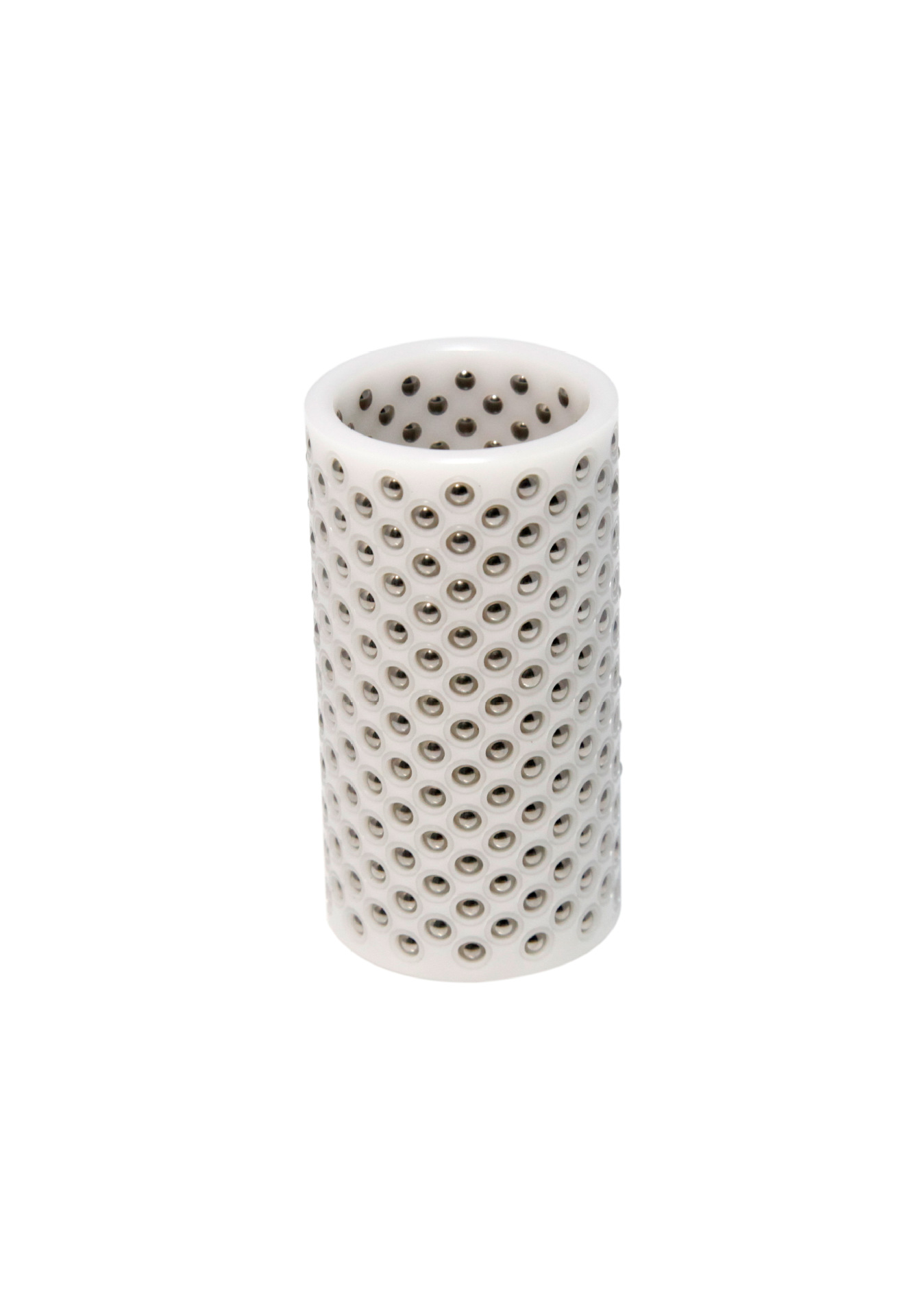 塑膠鋼珠套采用進口聚甲醛樹脂製成,具有強度高、比重輕、彈性好等特點;鋼球采用優質軸承鋼製成,精度達到G10級,承載負壓超過4800N。導柱和座式導套的尺寸和行位精度嚴格控製在0.003mm以內,配合在0.005mm以內,保證瞭該導向機構工作的精準性與靈活性,同時,優質的原材料保證瞭其耐磨性,裝卸型導柱便於安裝及維護;座式導套上的銷釘孔便於快速定位與安裝,高度通配性的零件保證瞭長期使用後需更換時的方便性與時效性。