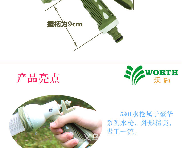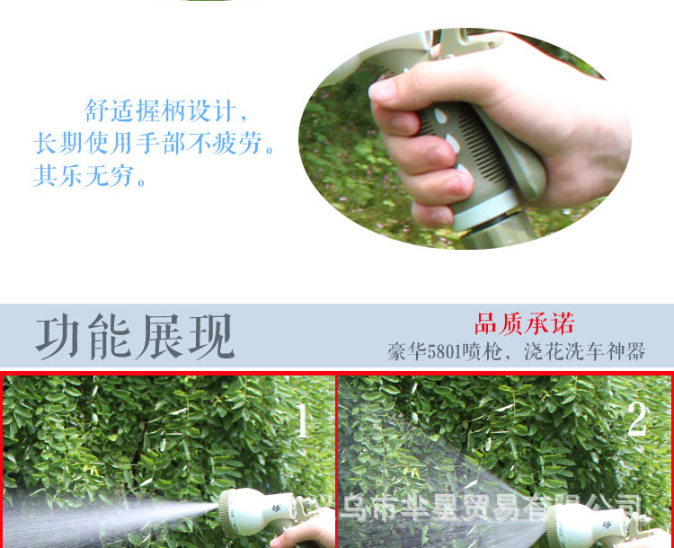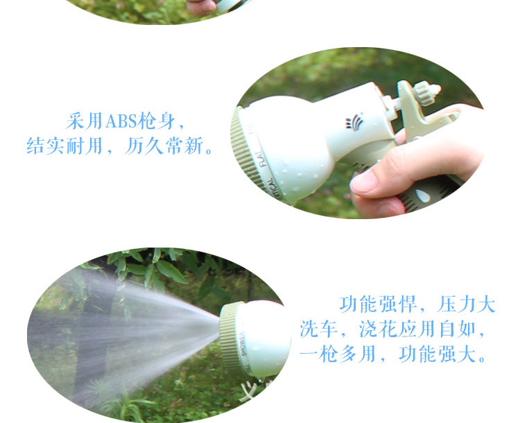 本寶貝包括:8功能噴水槍、快速接頭、止水接頭、水龍頭接頭