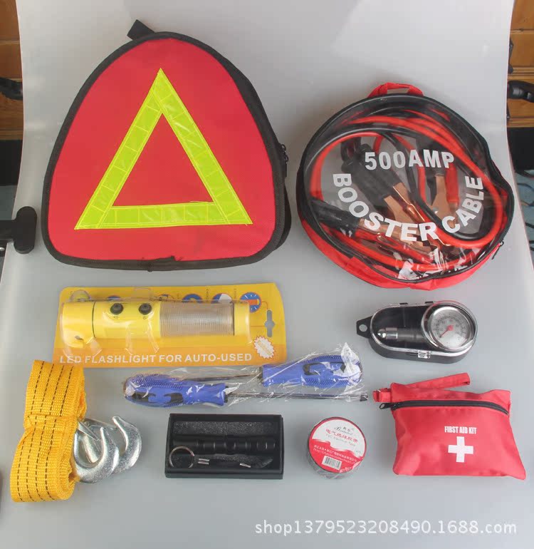 三角包:2合1安全錘,強光手電,反光背心,雨衣,拖車繩。價格38元。
