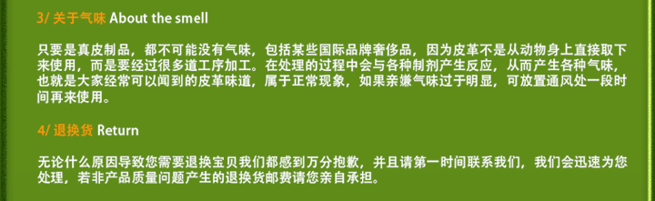★真皮麂皮★真的鹿皮(麂皮)是用真正的動物毛皮加工而成(麂皮隻是產品的名稱,麂是國傢保護動物,是不能獵殺的。所以我們的產品使用的是山羊皮和綿羊皮製作而成)。動物在生長過程中,因其所處的環境和其的食量不同,會出現薄厚不均、大小不一的現象,各別產品會出現小的破洞(這種價格一般偏低),屬於正常現象。產品在生產過程中使用瞭深海魚油(用來祛除羊的膻味添加的一種化學製劑),最初使用時會有魚的腥味,使用一兩次後會消除。