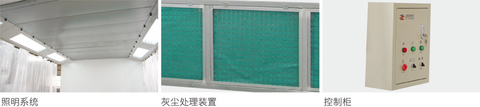 乾式處理,空氣以半向下的方式通過後墻板上設置玻璃纖維過濾裝置,對粉塵進行收集處理,保護環境,確保操作者安全。