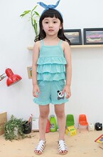 山東2013夏款 韓單外貿女童吊帶短褲套裝無色差女童夏季套裝