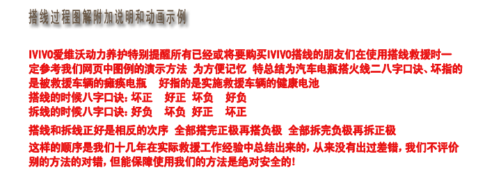 動電源成本高且市場應用不成熟)二有經驗的老司機都知道,在零下幾十度冰天雪地汽車放的一點電沒有油箱都凍住的情況下,還是需要用一套頂好的打火線,用上二塊最大容量超級沉的165AH大電瓶去打車,還需要提前生火烤油箱,而且搭火線啟車對電瓶和車沒有任何安全影響,安全便捷,所以任何情況下備一套加粗搭火線非常有必要。