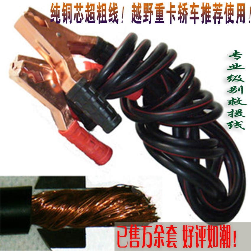 優點: 百分百純銅芯線,不僅可以啟動轎車及微型車,還可以啟動包括重卡系列如斯堪尼亞、沃爾沃、德國曼、奔馳、斯太爾、康明斯、東風、陜重汽、解放、尼桑、日野、五十鈴、三菱、現代、雙龍、起亞、大宇;客車類如西沃、亞星、廈門金龍、奔馳、現代; 輕卡類如福田、躍進、江淮、威鈴、五十鈴、慶鈴; 轎車類林肯、福特、通用別克、陸上艙、克萊斯勒、大捷龍等各種車型的啟動。基本一次即可輕松啟動,線體不發熱,柔軟,特別適用於氣候惡劣極寒地區比如我國的新疆、內蒙古、東北,國外如俄羅斯等。也特別適用於大型車隊、4S店救援中心、各汽修店配套使用。