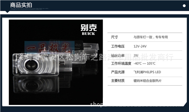 產品名稱:BUICK別克專用改裝LED迎賓投影車門燈 迎賓燈 照地燈 鐳射燈