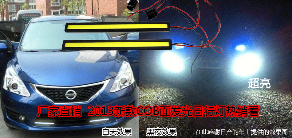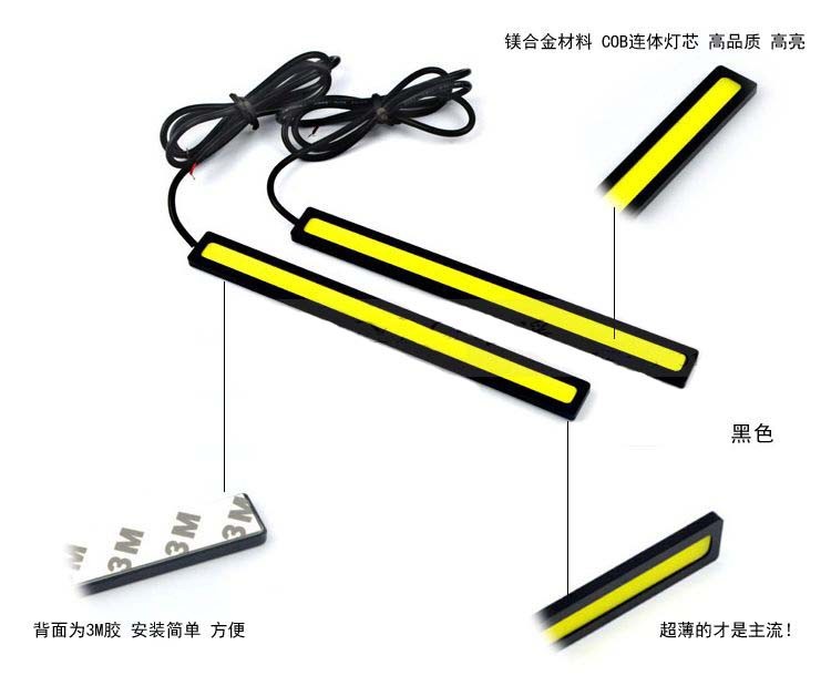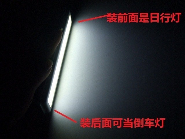 固定方法:日行燈隨包裝配有正品3M膠,貼前清理乾凈受貼麵,將3M膠用風筒加熱後一麵貼在日行燈背麵,另一麵貼在汽車安裝位置即可。