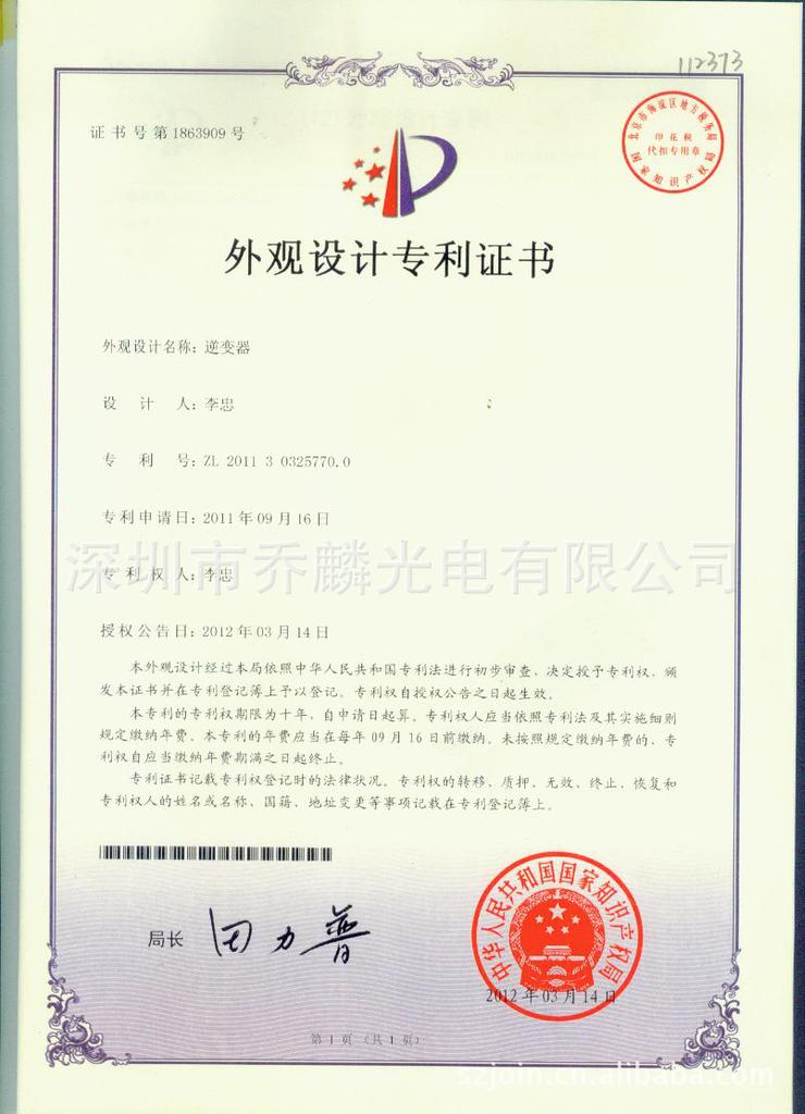 本公司 產品通過CE認證,認證號:NO.:TB09116666,並獲得冷陰極熒光燈保護膜塗敷液及其配製方法的發明專利,專利號:ZL200510036088.3