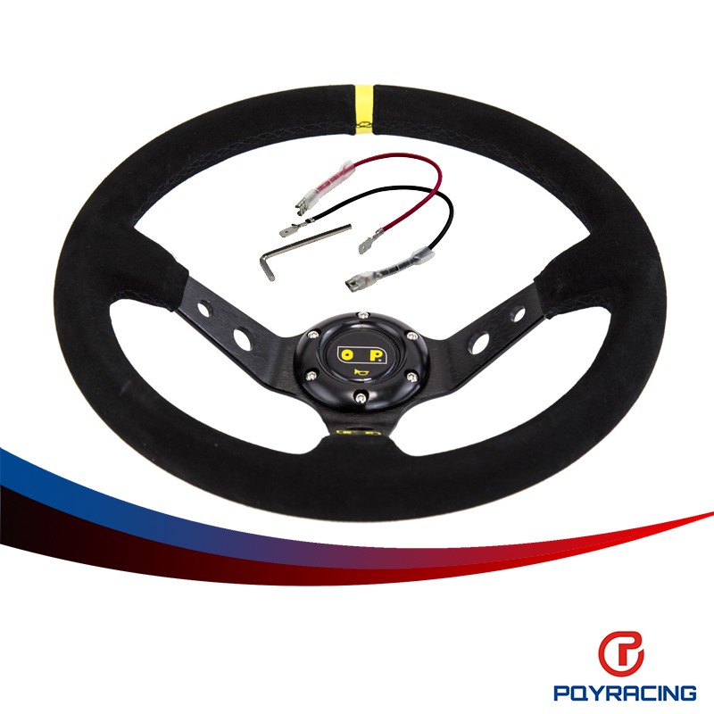 PQY RACING- Steering wheel ID=14inch 350mm OMP Deep Corn Drifting Steering Wheel / Suede Leather Steering wheels PQY-SW21