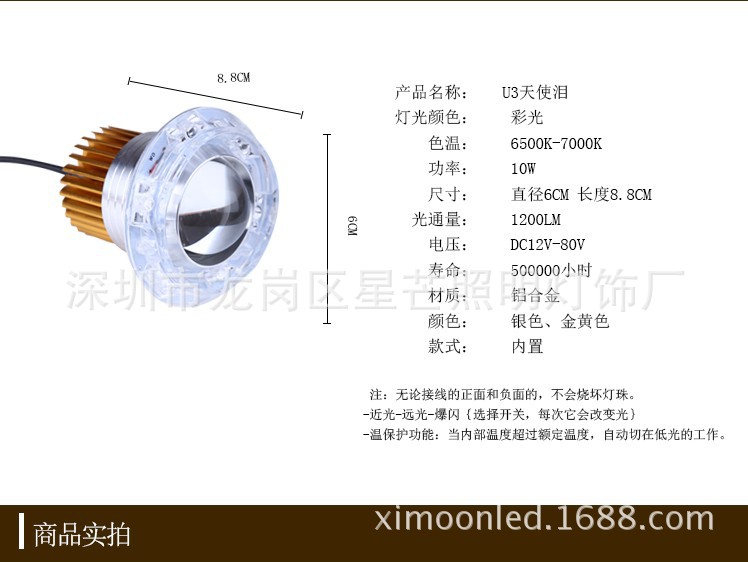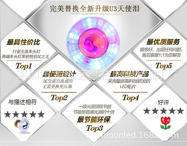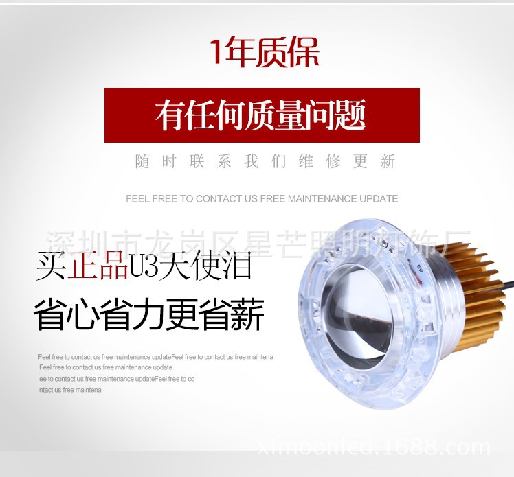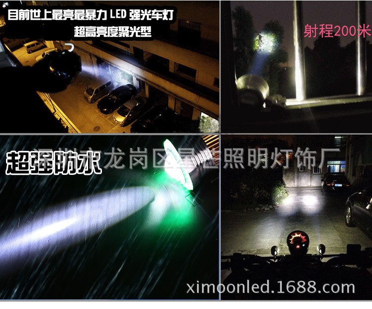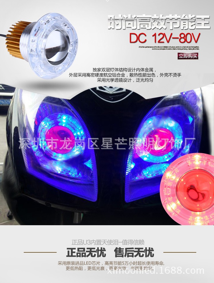 摩托車U3激光炮大燈泡 摩托車電動車超亮LED大燈天使眼大燈惡魔眼