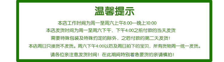 ◆產品拍下以後,如有現貨,在當天下午4:00之前付款的一般是當天發貨,如沒有現貨我們開始生產,一般生產周期為5-7天,發貨到目的地為2-10天,敬請各位淘友諒解,特殊情況3天內會和您協商。對於買傢拍下並付款的商品,我們會盡快安排發貨,此運費為山東省內運費,由於各位淘友所在地區的不同,郵費也不盡相同,所以在拍下之前請和我們協商郵費!