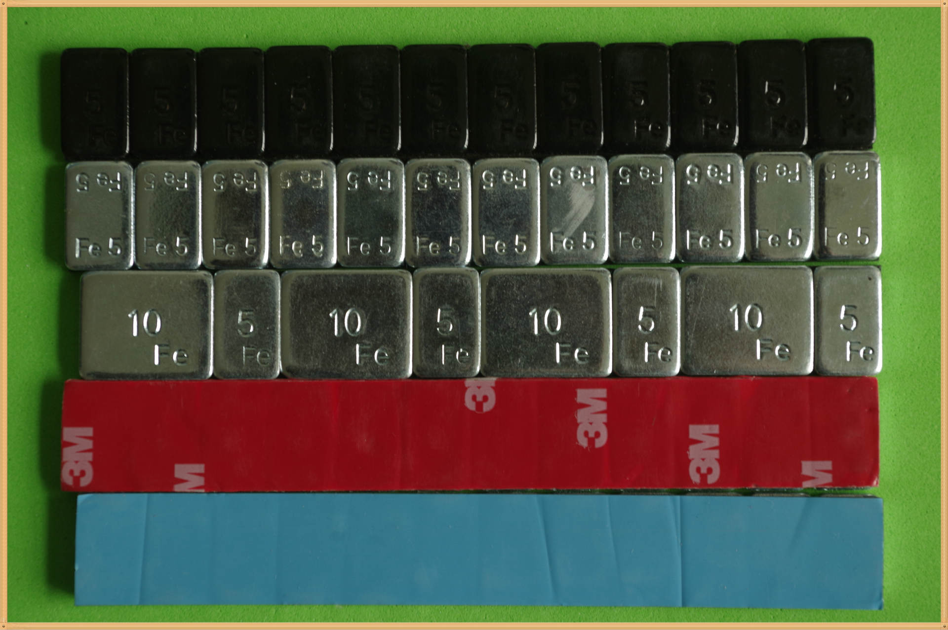 本款鐵質粘貼式平衡塊厚度為4mm,背麵粘貼可按客戶要求選擇紅膠、白膠、藍膠及3M膠,黏性好,不易脫落,每種價格另議,量大優惠。