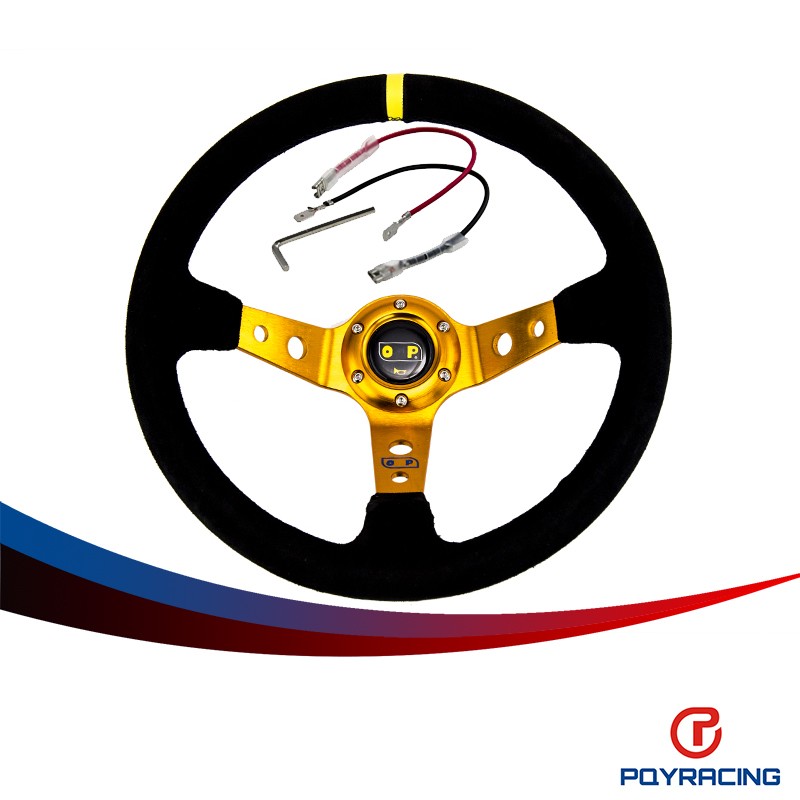 PQY STORE- Blue Steering wheel ID=14inch 350mm OMP Deep Corn Drifting Steering Wheel / Suede Leather Steering wheels PQY-SW21G