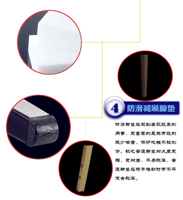 | 5.椅腳都配有專用的防滑腳墊,美觀的同時減少噪音,保護地板不被劃傷; | ||||