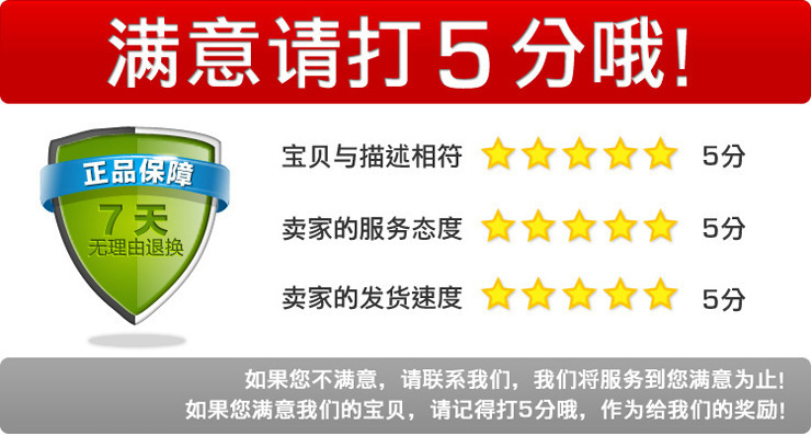 2、我們產品都是經過仔細檢查後才發貨,產品在運輸過程可能有個別損壞現象,請買傢提貨時當麵驗貨。驗貨是買傢的權力和義務;對於沒有驗貨就簽收的買傢,我們將視為客戶已經認可貨物沒有問題。