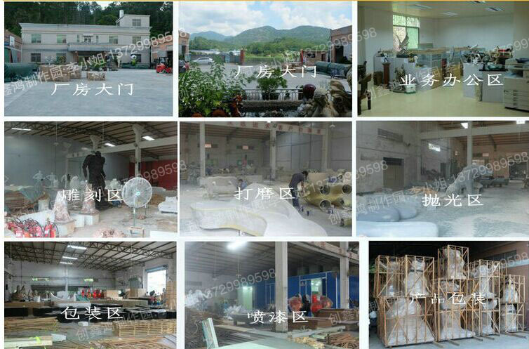 如果長期有這方麵的訂單或量大的客戶最好是親自來咱們廠看看規模,生產環境,產品質量,這裡有帥哥,有美女,有茶水,還有樸實勤勞的工人們.眼見為實,實實在在的,是咱們做人做事做雕塑的原則,由於產品大件全都是露天拍攝,不過這樣更真實,請廣大客戶諒解.