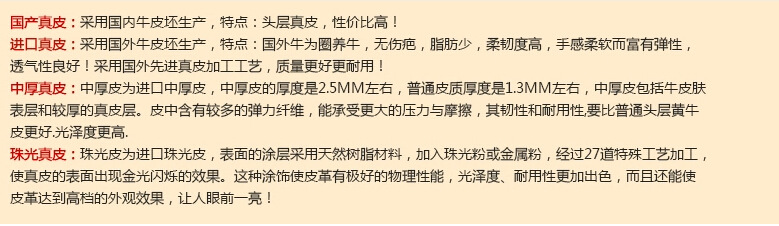 超纖仿真皮是最好的再生皮,皮紋與真皮十分相似,手感如真皮般柔軟,外人也很難分辨是真皮還是再生皮。超纖皮,屬於合成皮革中的一種新研製開發的高檔皮革,屬於新型的皮料種類。因其具有耐磨、耐寒、透氣、耐老化、質地柔軟、環保以及外觀漂亮等優點,已成為代替天然皮革的最理想選擇。天然真皮是由許多粗細不等的膠原纖維“編織”而成,分粒麵層和網狀層兩層,粒麵層由極細的膠原纖維織而成,網狀由較粗的膠原纖維編織而成。