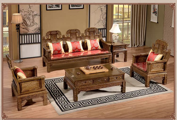 紅木沙發傢具非洲雞翅木象頭實木如意福祿壽新中式裝修廠特價直銷