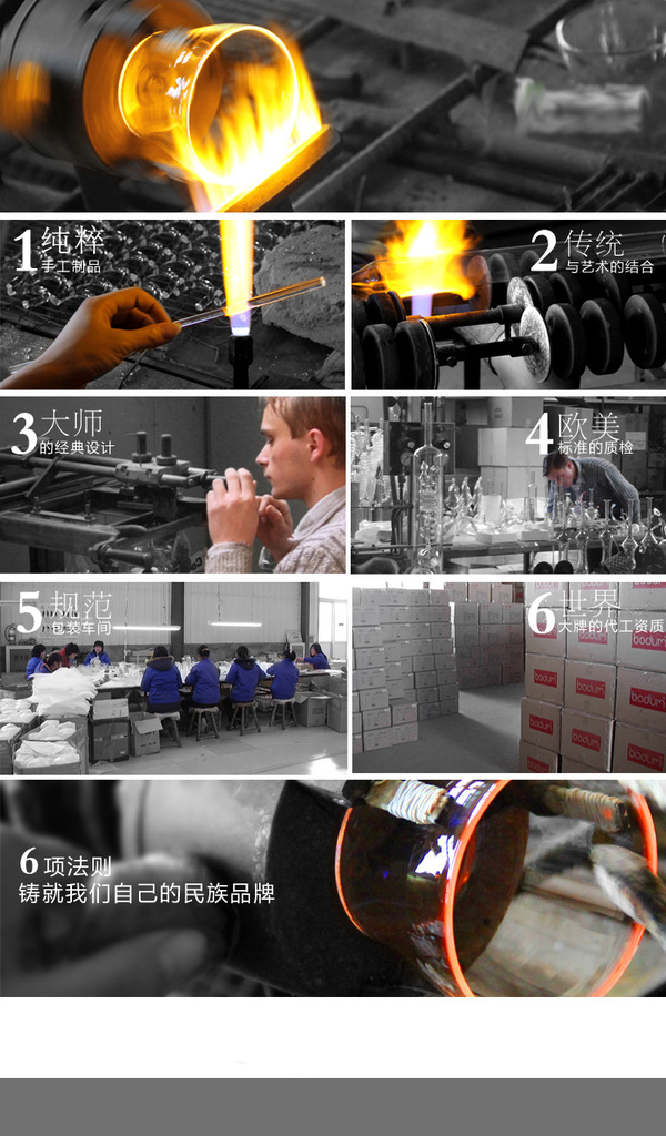 | 材質:高硼矽耐熱玻璃製品 製作流程:在一千六百多度以上的火焰上燃燒,通過人工旋轉燃燒燒均勻胚料,然後放入石墨模具中旋轉吹製而成。 |