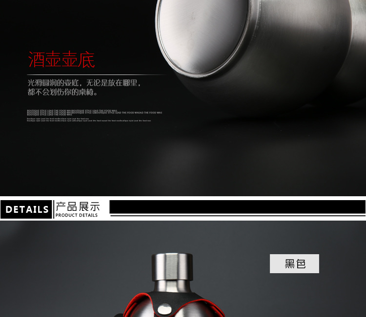 酒壺采用優質不銹鋼,激光焊接工藝,可以提供激光打標服務,具體費用與銷售人員聯系。