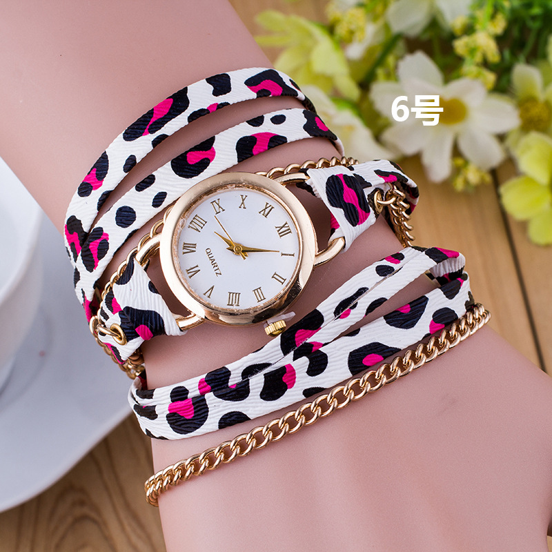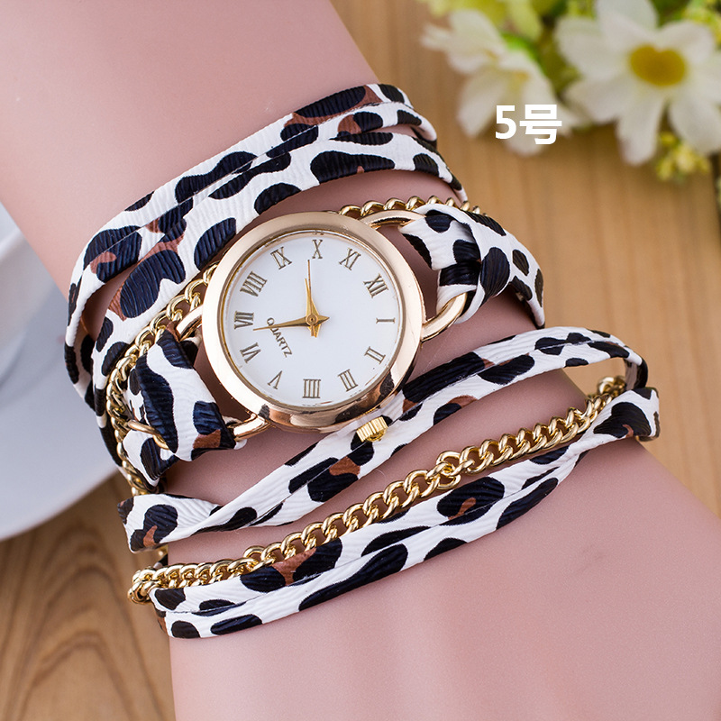 歐版韓國長帶鏈條纏繞手錶 速賣通金色三圈纏繞鏈條豹紋手錶