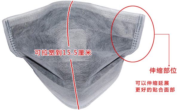 4.活性炭口罩可有效阻隔空氣中的苯、氨、甲醛、異味、惡臭等有害氣體,保障人體健康,比一般的普通口罩有更強大的吸附性.對於有害的氣體、液體的過濾作用是普通口罩的30倍。