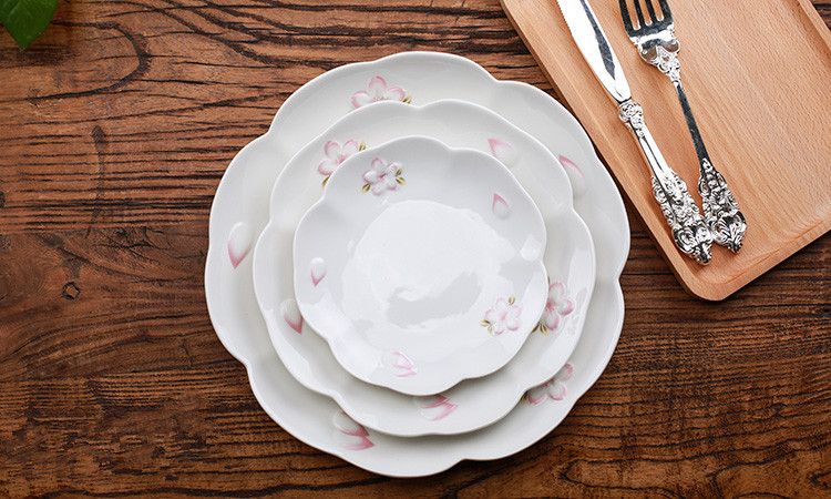 年貨廠傢直銷色釉陶瓷盤子櫻花浮雕摟空點平盤菜盤蛋糕盤五果碗