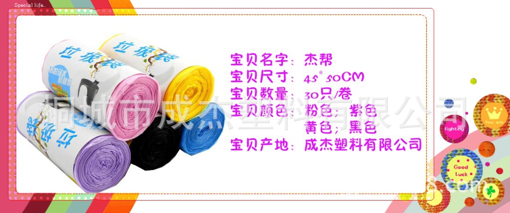 | 傑幫粉色垃圾袋 | 45cm | 50cm | 30隻/卷 | 66-70克/卷 |