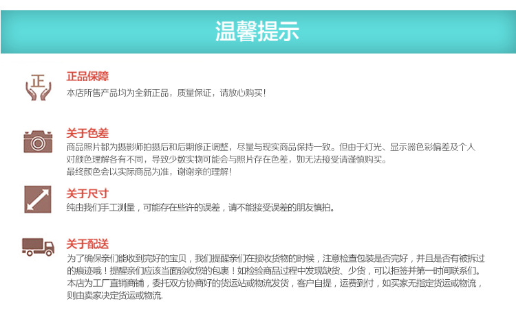2)本店所展示的商品圖片均為實物拍攝,但圖片在製作過程中的色差問題是普遍存在的,本店的所有圖片都與實物經過仔細對比,盡量把色差降到最低,對顏色要求很高的請慎重考慮;