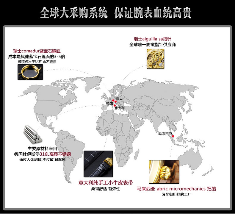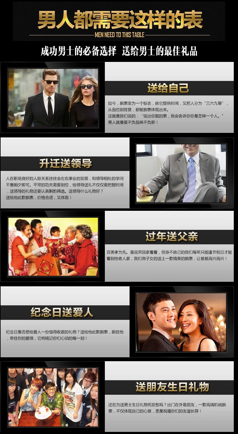 - 優選進口原材料,用好材做好表。此產品可按客戶實際需求更改材質,表殼、表麵、表針、巴的、表帶、防水深度等等都可以按成本高低進行調整以符合您的實際需求。