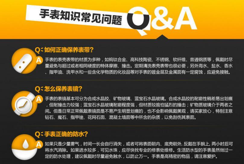 2.不要隨意打開表後蓋,以免塵埃進入機芯影響手錶的正常工作。