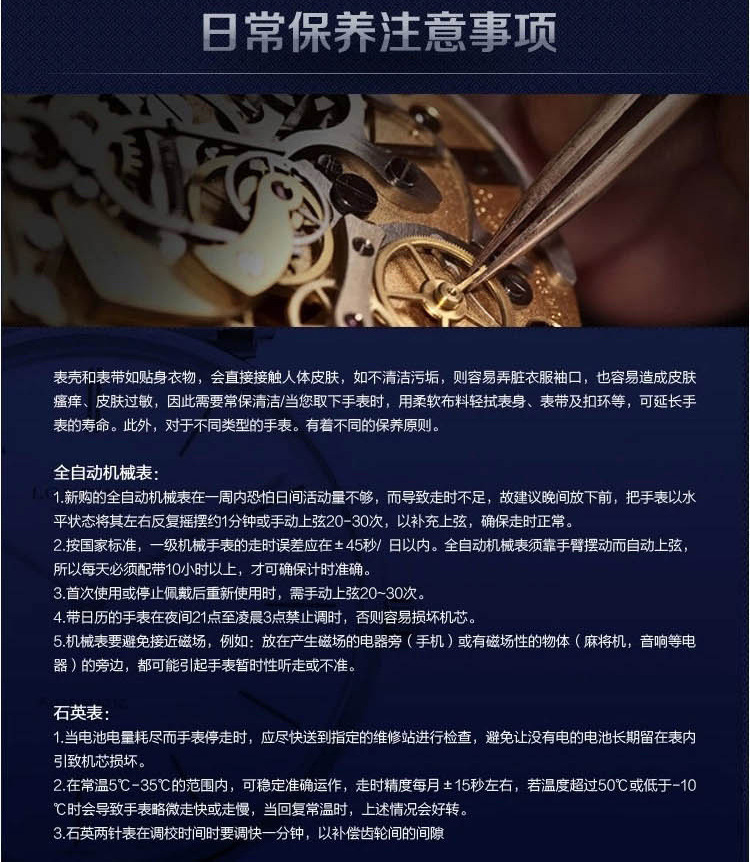 3.手動機械表必須每天早晚手動上鏈.
