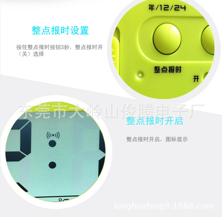 ■ 報時及整點報時之播報語句為“Dong”+報時+溫度。