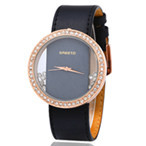 速賣通新款上市歐美大氣時尚貓頭鷹皮帶手錶 女式石英水鉆手錶