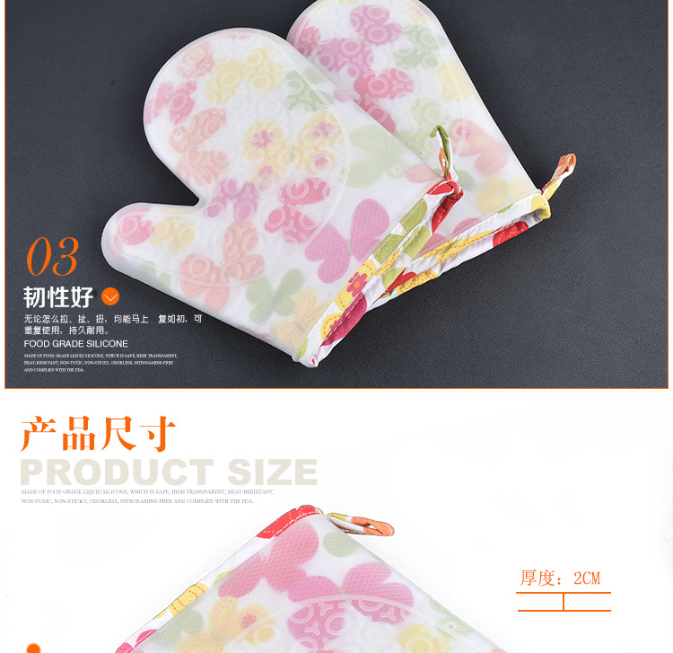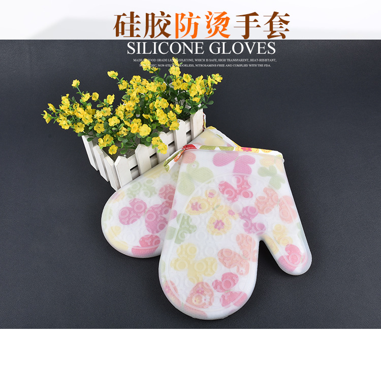 產品名稱;短款蝴蝶花平口矽膠手套矽膠微波爐手套隔熱手套微波爐手套