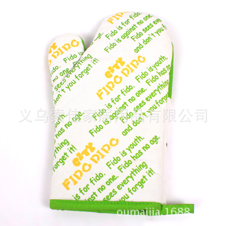 - 烤箱手套系列:全棉手套、BBQ手套、T/C手套、塗銀手套、阻燃手套、印花手套、廣告禮品(贈品)手套、廚房三件套等。