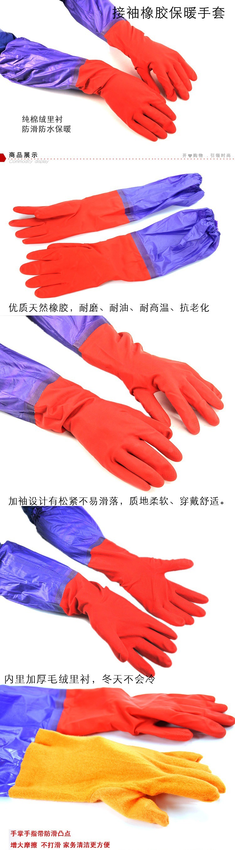 商品名稱:加長接袖雙層內毛絨保暖防水手套/橡膠手套